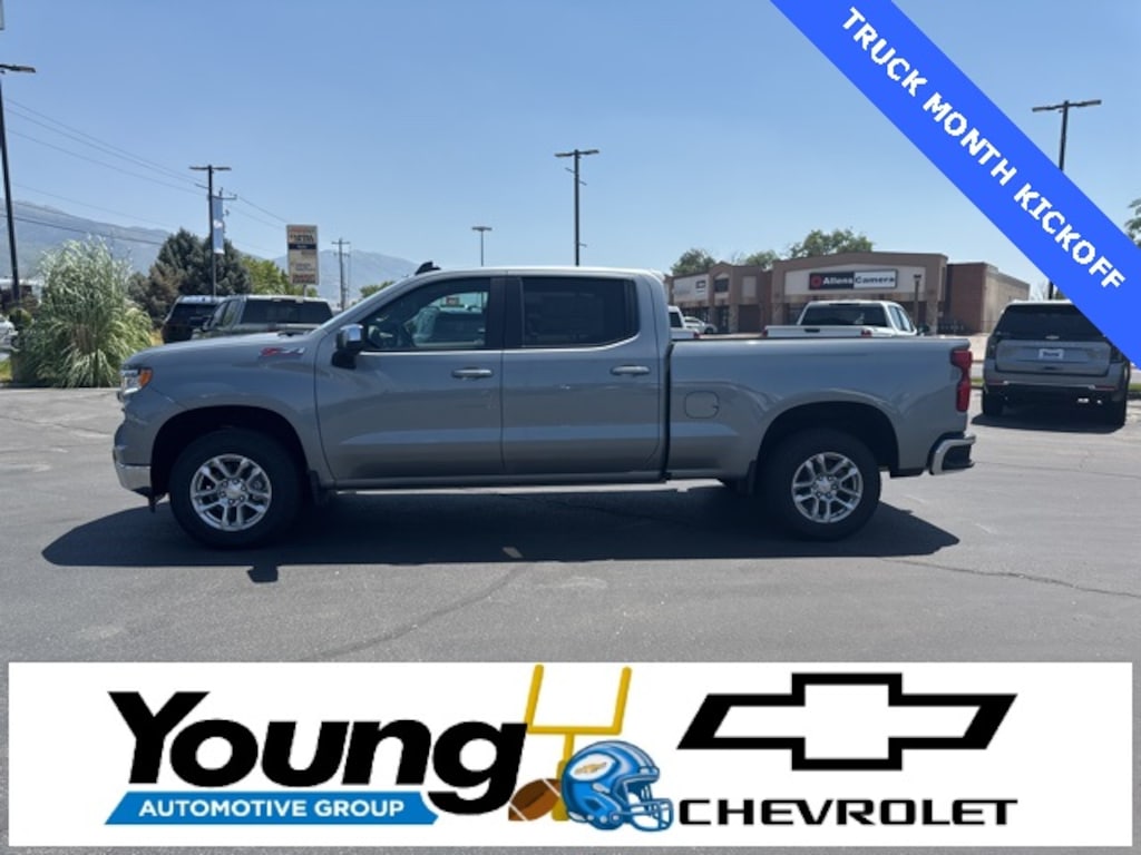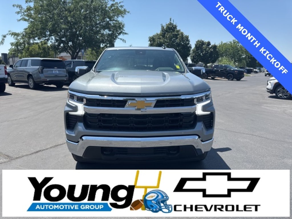You are now working with the #1 Chevrolet Dealer in Northern Utah. We take pride in offering the best selection in the state at the very best price. With over 200 years of combined automotive experience between Chevrolet and the Young Automotive Group. Call and schedule your visit with us today. Think Young, Think Young Chevrolet 801-544-1234 â" 645 N Main Street Layton Utah 84041. To Qualify for the Young Chevrolet Advertised Price, customer must use Young Chevrolet Dealer Financing. Dealer is to arrange Financing for the vehicle. Cannot be combined with any other offers or discounts. Not all buyers will qualify for available offers, incentives or discounts based on Credit, Trade, Model, Zip Code, etc. Young Chevrolet Advertised Price does not include Taxes, States Fees, Registration Fees, Dealer Fees, or any Dealer Installed Accessories. Not all Customer will qualify. Contact dealer for details. 4D Crew Cab Sterling Gray Metallic 4WD EcoTec3 5.3L V8 10-Speed Automatic LT Price excludes any dealer installed accessories and includes: $1000 - Bonus Cash. Exp. 11/03/2025 $2000 - Customer Cash. Exp. 11/03/2025