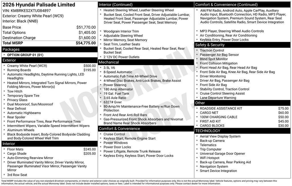 Creamy White Pearl 2026 Hyundai Palisade Limited AWD 8-Speed Automatic V6