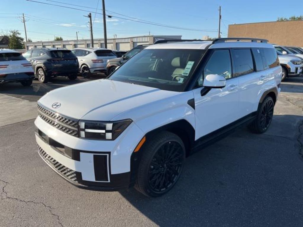 Serenity White 2026 Hyundai Santa Fe Calligraphy AWD 8-Speed Automatic with SHIFTRONIC 2.5L I4 Price includes the following incentives, not all customers will qualify. See dealer for details. : $2250 - Hyundai HMF Dealer Choice : $2250 discount and 5.99% APR for 24 months. $44.32 per $1000 financed. Available to well qualified buyers who finance through Hyundai Motor Finance. H704. Exp. 11/03/2025