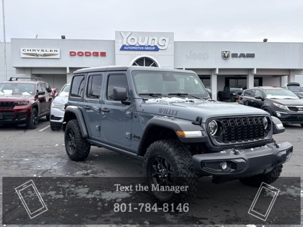 The 2026 Jeep Wrangler Willys pays tribute to Jeeps legendary heritage with classic style and enhanced off-road capability. Featuring rugged hardware, trail-ready performance, and authentic design details, its built for true adventure seekers. Tough, timeless, and capable, the Willys edition is pure Jeep through and through. Price includes: $1500 - 2026 National Stellantis Loyalty Retail Bonus Cash . Exp. 01/05/2026 $2500 - 2026 National Select Inventory Bonus Cash. Exp. 01/05/2026 $500 - 2026 National 2026 First Responder Bonus Cash . Exp. 01/05/2026 $500 - 2026 National 2026 Military Bonus Cash . Exp. 01/05/2026