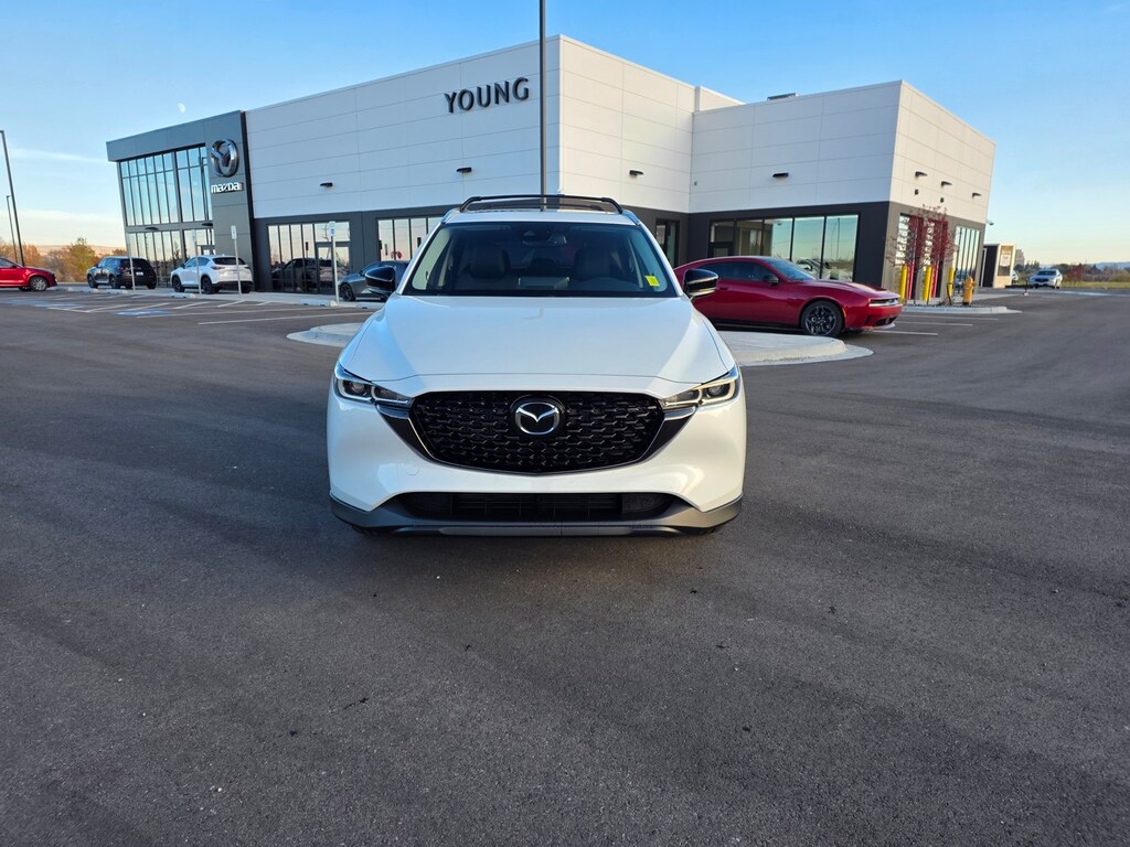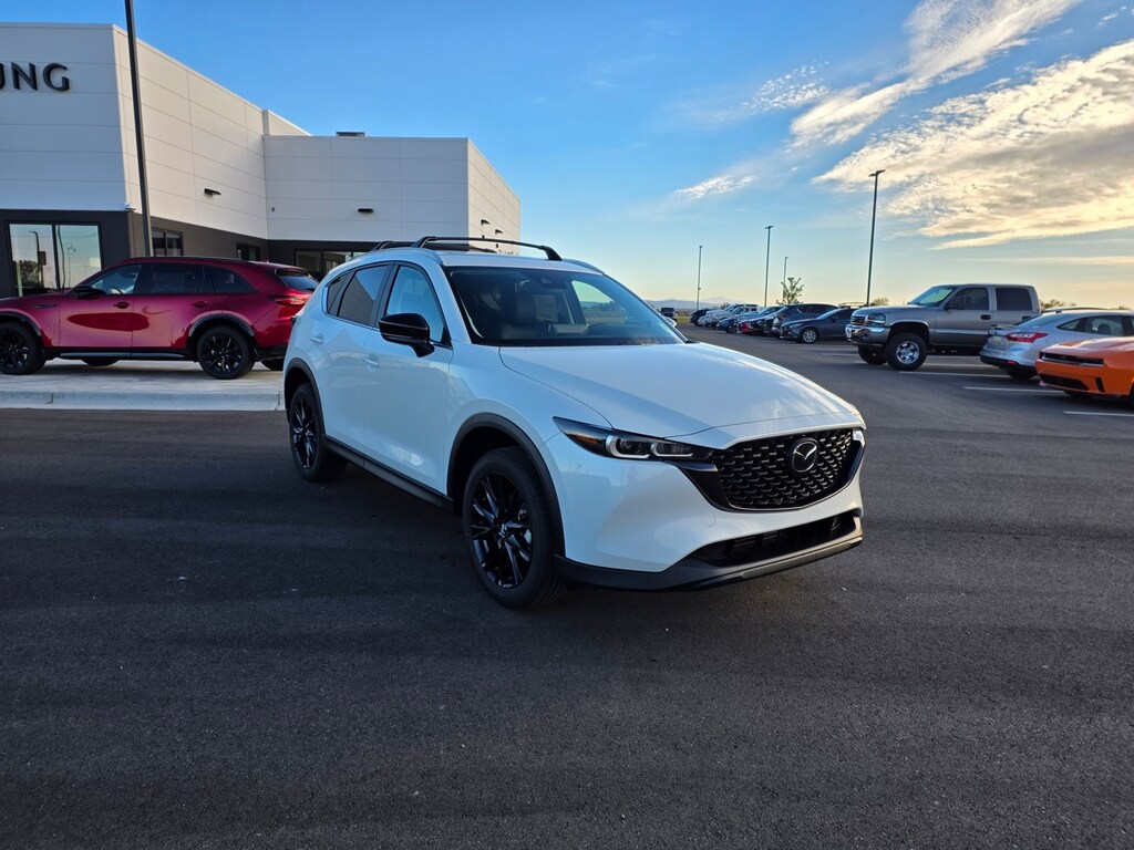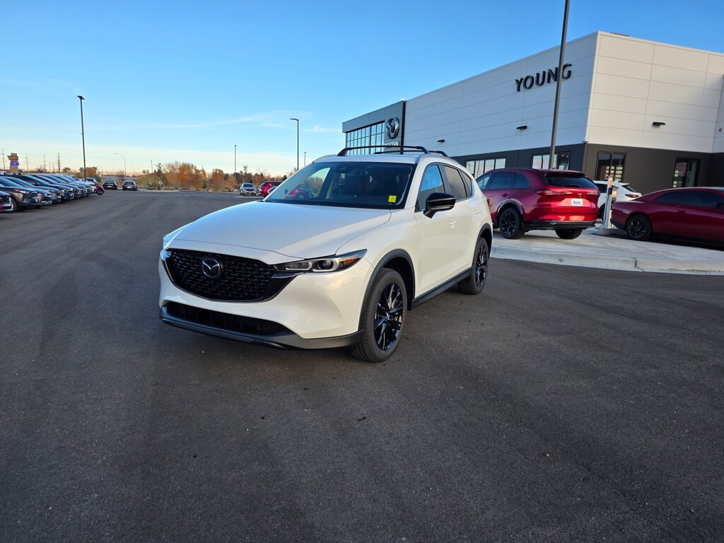 Rhodium White Metallic 2025 Mazda CX-5 2.5 S Carbon Edition AWD 6-Speed Automatic SKYACTIV® 2.5L 4-Cylinder DOHC 16V 10 Speakers, ABS brakes, Apple CarPlay and Android Auto, Auto High-beam Headlights, Auto-dimming Rear-View mirror, Brake assist, Dual front impact airbags, Dual front side impact airbags, Electronic Stability Control, Emergency communication system: MAZDA CONNECT, Four wheel independent suspension, Front anti-roll bar, Front dual zone A/C, Garage door transmitter: HomeLink, Heated Front Bucket Seats, Illuminated entry, Leather Seat Trim, Leather Shift Knob, Leather steering wheel, Memory seat, Occupant sensing airbag, Overhead airbag, Power door mirrors, Power driver seat, Power Liftgate, Power moonroof, Power passenger seat, Rain sensing wipers, Rear anti-roll bar, Remote keyless entry, Speed control, Speed-sensing steering, Telescoping steering wheel, Tilt steering wheel, Turn signal indicator mirrors, Wheels: 19" x 7J Aluminum Alloy. 26/30 City/Highway MPG