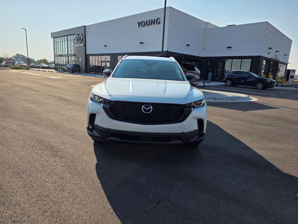 Wind Chill Pearl 2025 Mazda CX-50 2.5 S Preferred Package AWD 6-Speed Automatic SKYACTIV® 2.5L 4-Cylinder DOHC 16V Apple CarPlay and Android Auto, Auto High-beam Headlights, Brake assist, Dual front impact airbags, Dual front side impact airbags, Electronic Stability Control, Emergency communication system: MAZDA CONNECT, Front anti-roll bar, Front dual zone A/C, Front wheel independent suspension, Half Leatherette Seat Trim, Heated door mirrors, Heated Front Bucket Seats, Illuminated entry, Knee airbag, Leather Shift Knob, Leather steering wheel, Occupant sensing airbag, Overhead airbag, Power door mirrors, Power driver seat, Power Liftgate, Rain sensing wipers, Remote keyless entry, Speed-sensing steering, Telescoping steering wheel, Tilt steering wheel, Turn signal indicator mirrors, Wheels: 17" x 7J Aluminum Alloy. 25/31 City/Highway MPG