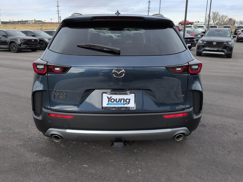 Ingot Blue Metallic 2026 Mazda CX-50 2.5 Turbo AWD 6-Speed Automatic 2.5L Skyactiv-G Turbo I4 ABS brakes, Active Cruise Control, Alloy wheels, Electronic Stability Control, Front dual zone A/C, Heated door mirrors, Heated front seats, Illuminated entry, Leather Seat Trim, Low tire pressure warning, Power Liftgate, Power moonroof, Remote keyless entry, Traction control. 23/29 City/Highway MPG